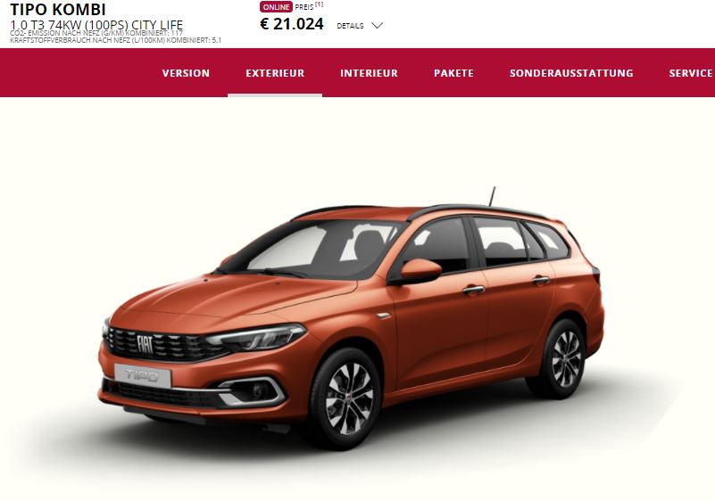 Mein Fiat: FIAT Tipo 1.0 Fire Fly Kombi City Sport, Vollausstattung, bis auf nicht lieferbare Parksensoren vorne und hinten, Metropoli Grau