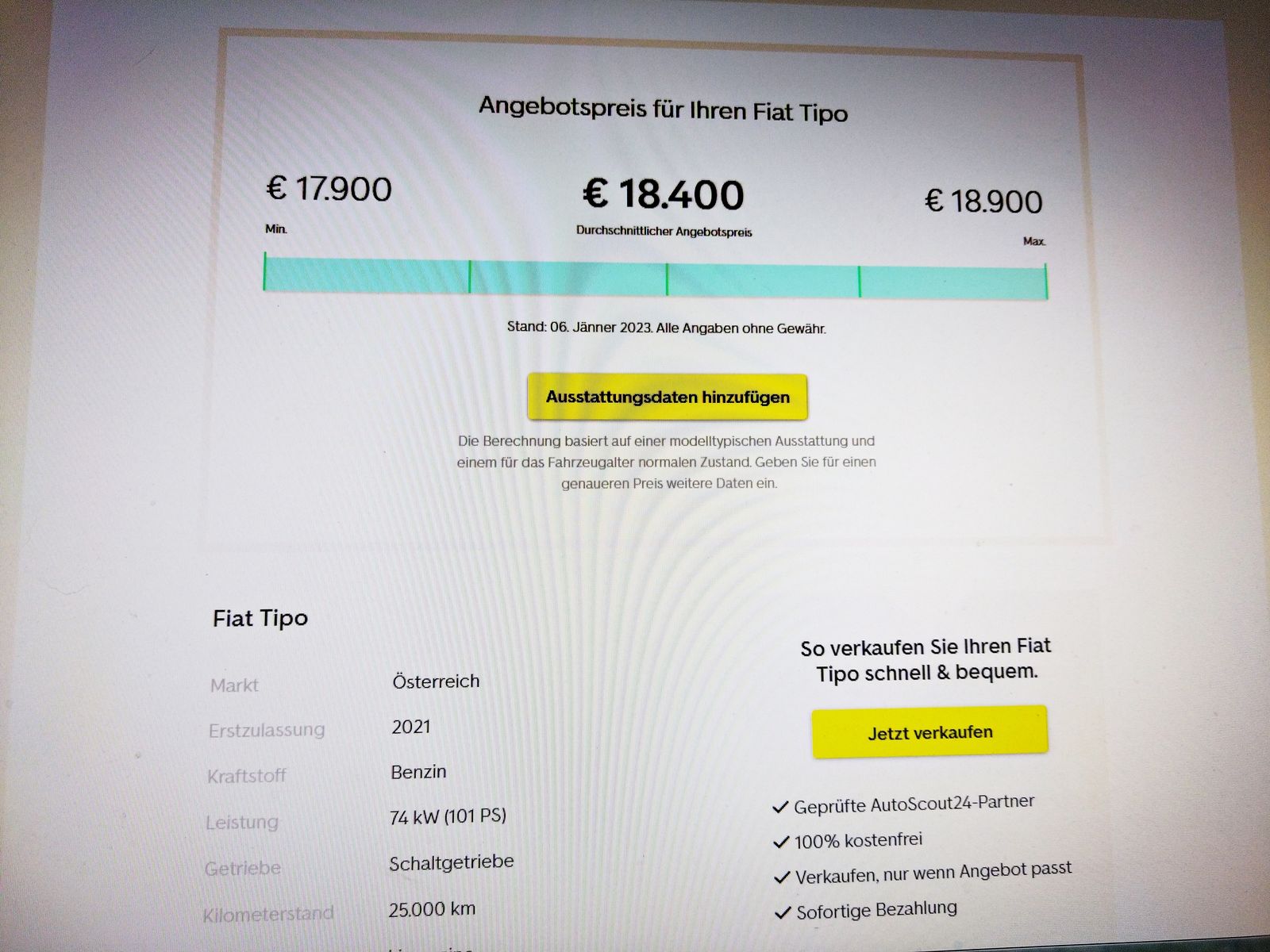 Autoscout schlägt vor, 18.400 Euro wäre ein faires Angebot.