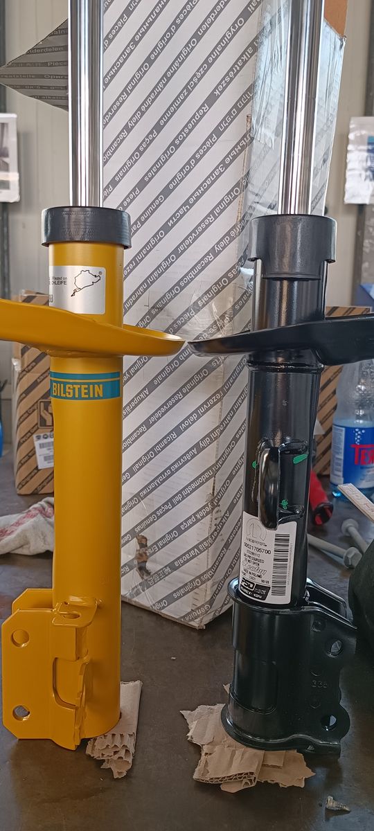 Was aber gravierend ist, ist die Zugstufe... die ist wesentlich langsamer als beim originalen Dämpfer. Zumindest so im unbelastetem Zustand per Hand zusammen gedrückt. Der Bilstein fährt wesentlich langsamer heraus als der originale. Bin mal gespannt ![]()