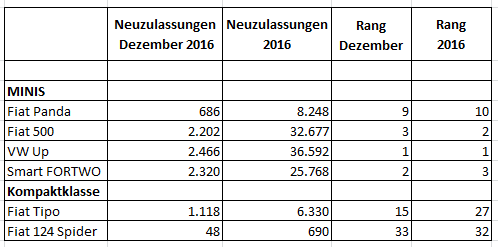 Auch im letzten Jahr belegte der Fiat 500 Platz 2 in Deutschland, Fiat 500 der Dauerzweite!