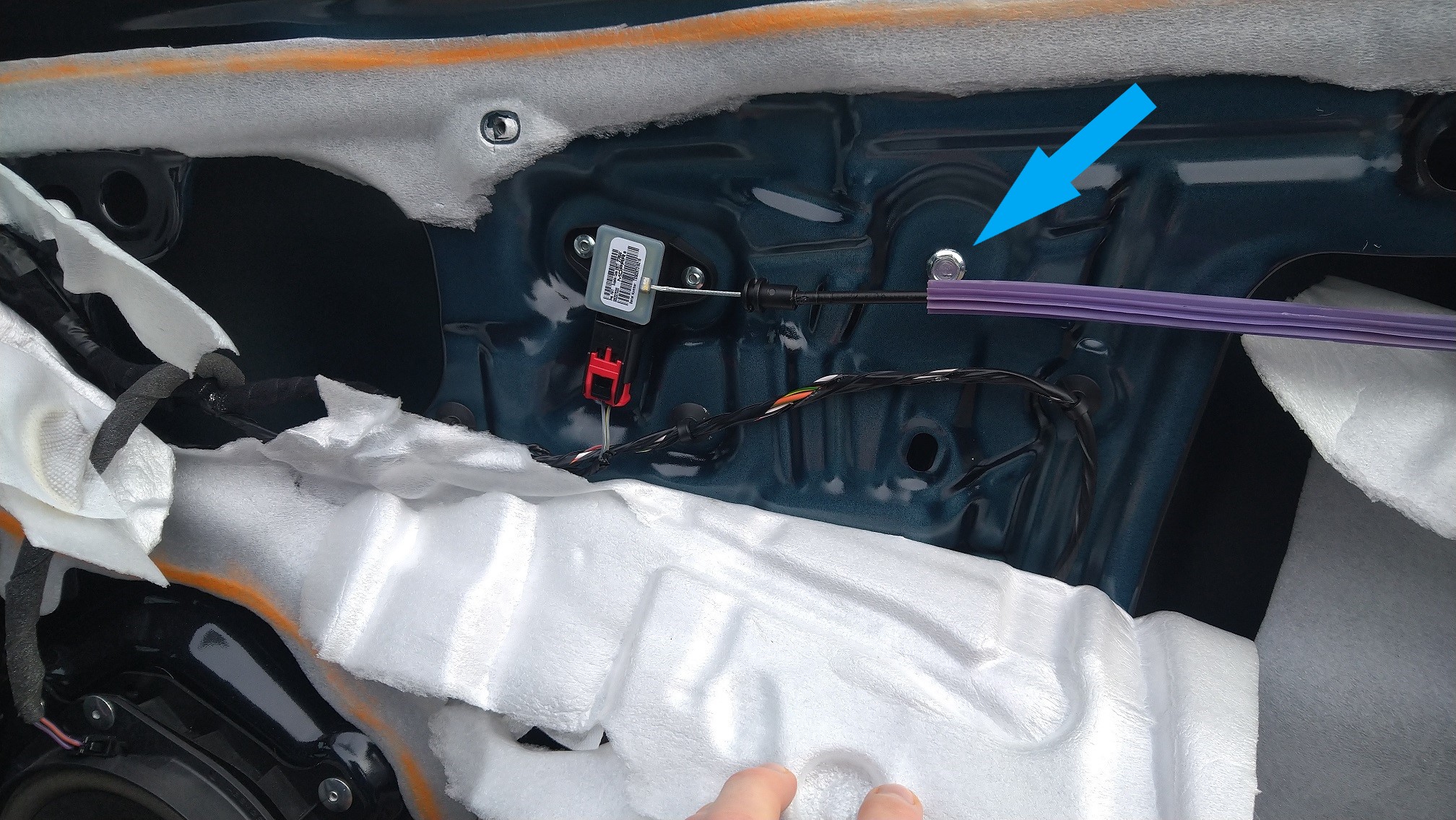Zum Schluss den Seilzug von der Tür in die Verkleidung eingehakt und diese montiert. Zierblenden wieder drauf, Fertig.