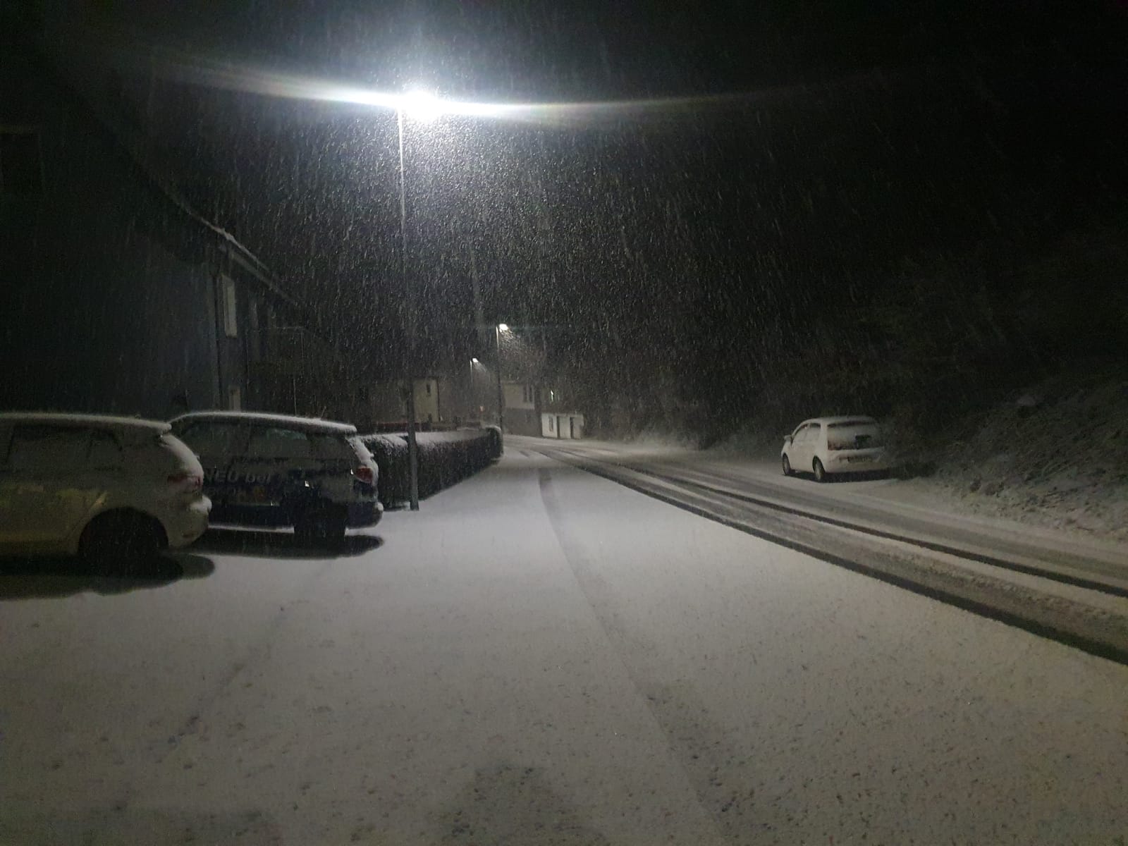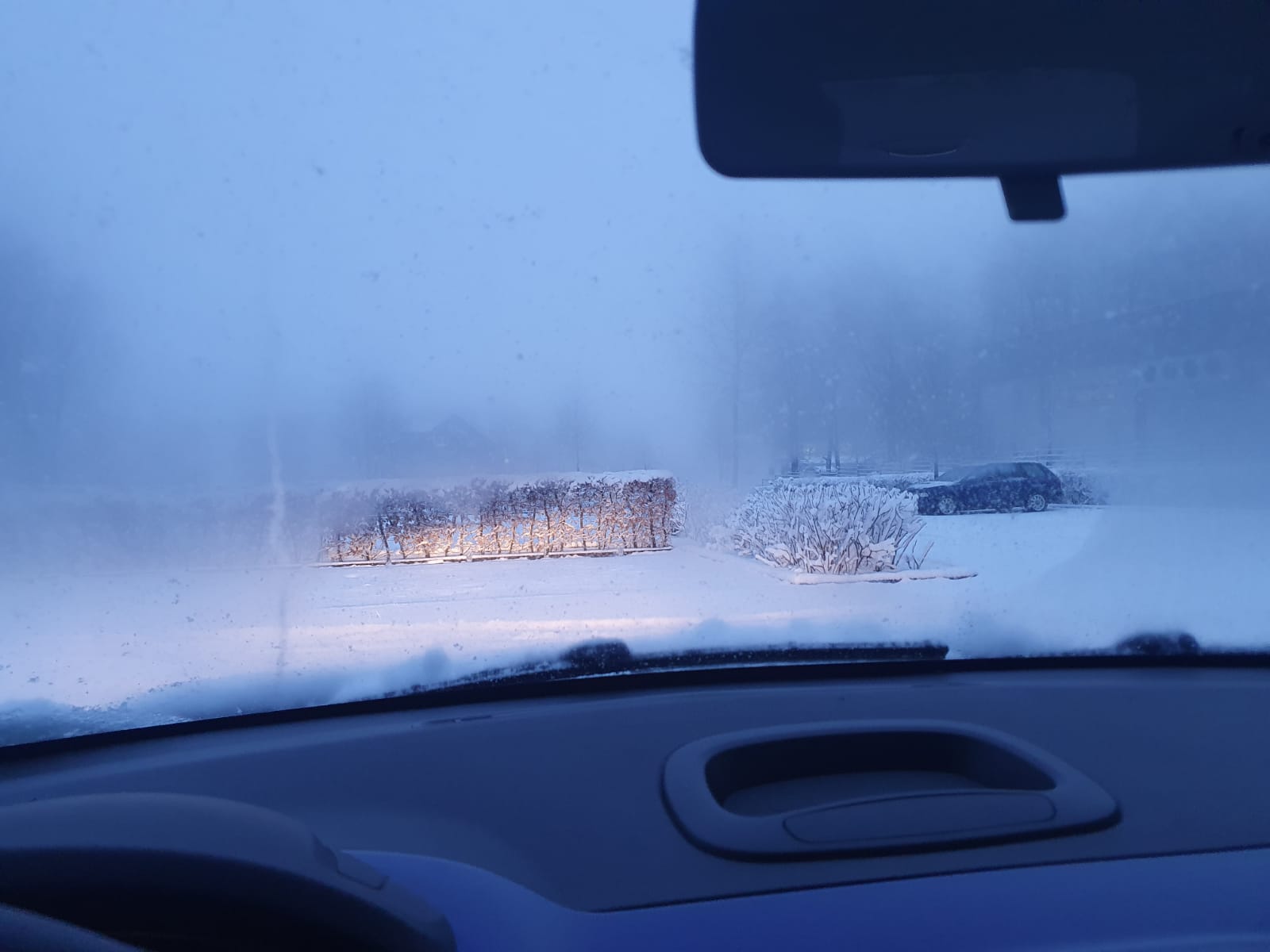 Guten Morgen, es liegt viel Schnee auf denn Boden krass mann gleich mit Auto zur Berufschule.