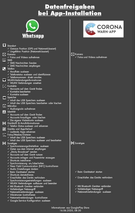 • Mein Reden, wer die Sozialen Medien und/oder Googeldienste nutzt darf alles, aber keine Datenschutzbedenken bei der Coronaapp anmelden....und das sind wohl weit über 90% würde ich mal schätzen.