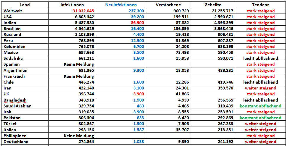• Die USA haben von gestern auf heute die traurige Marke von 200.000 Toten "im Zusammenhang mit Covid 19" überschritten. ;(