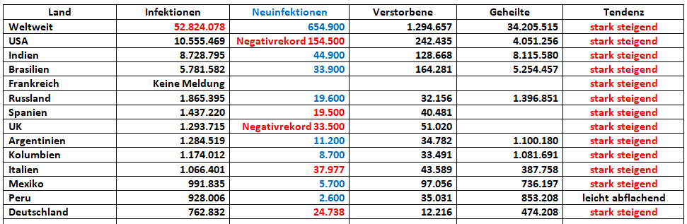 Bei uns steigen die Gerüchte eines voll-Lockdowns ab Dienstag. Wird aber erst am Samstag bekannt gegeben. Warum? Vielleicht weil die Deppen es geil finden, wenn Montag nochmal alle die Geschäfte stürmen und alle gleichzeitig einkaufen gehen! Ich versteh die nicht mehr.