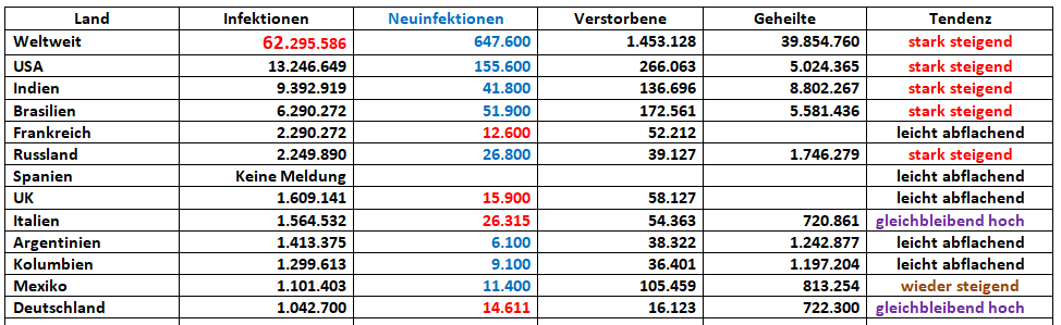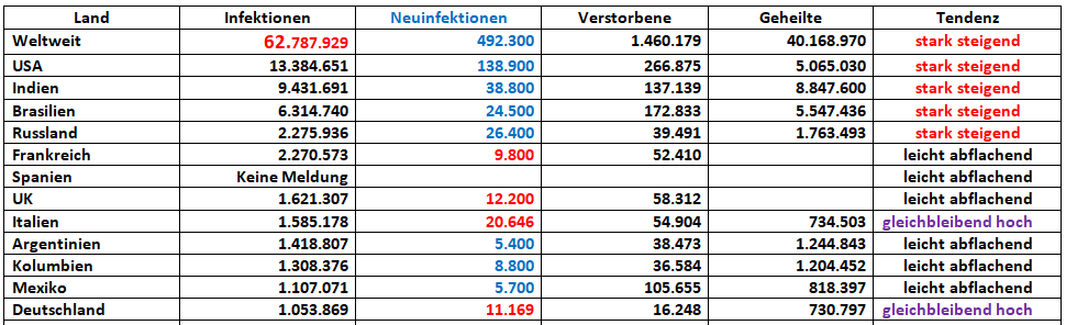 So makaber es klingen mag, bei den ganzen nichtssagenden Informationen die mir täglich um die Ohren gehauen werden, zweifle ich auch diese Zahlen an. Nicht das es die Toten nicht geben soll, die gibt es sicherlich. Die Frage die sich mir stellt: Sind die Leute mit oder an Corona gestorben? So lange das nicht nach dem Ableben geklärt ist, sind die Zahlen völlig bedeutungslos. Aber je höher die Zahlen ausfallen, um so größer ist scheinbar die Akzeptanz der Bevölkerung für irgendwelche Maßnahmen, ob sie Sinn ergeben oder nicht.