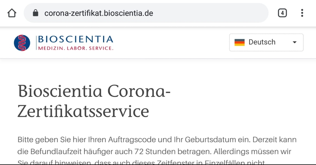 • Meine Frau wurde ja heute früh um 8:00 Uhr getestet. Was absolut kurios ist: Sie hat ein Kärtchen mit einem QR-Code und einer Internetadresse mitbekommen, unter der sie den Stand der Untersuchung und das Ergebnis abrufen kann, sofern es denn vorliegt. Ich natürlich interessehalber die Seite mal aufgerufen: Gibt es überhaupt nicht. Dann gegoogelt und herausgefunden, dass die Adresse mittlerweile eine ganz andere ist. Das Ergebnis kann bis zu 3 Tage oder auch mehr dauern. Dass der Test eingegangen ist wird jedoch schon angezeigt.