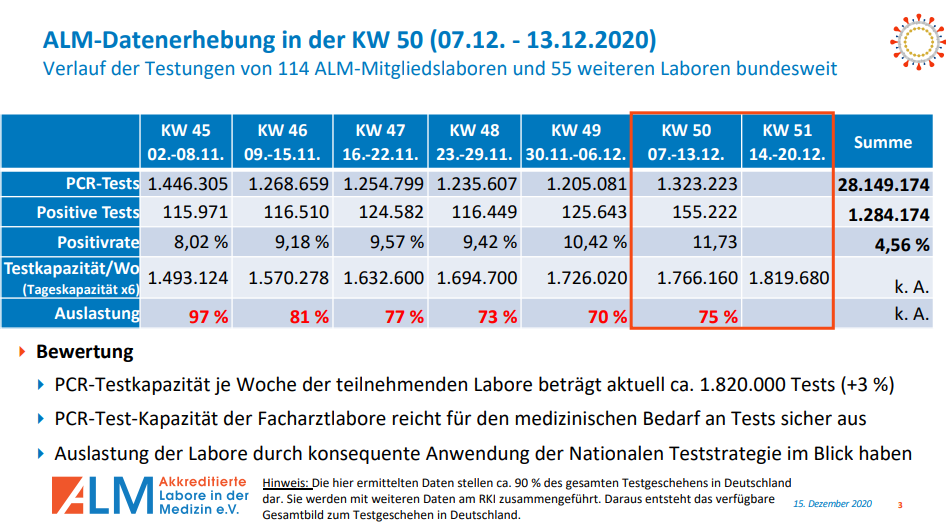 Das sind die Labor-Zahlen aus der letzten Woche, KW 50!