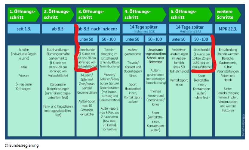 die dann selbstständig entscheiden, siehe Schleswig Holstein dort darf ab 8märz der Einzelhandel aufmachen außer