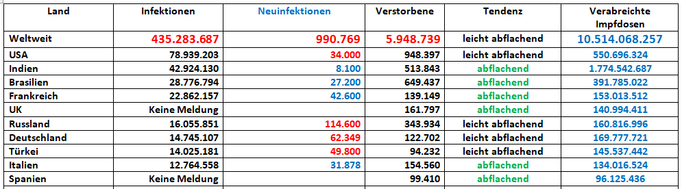 Bei Elke auf der Arbeit in der Porzellanfabrik sind von drei Schichten in ihrer Abteilung aktuell 10 von 15 Arbeiterinnen positiv getestet...und diese 10 sind alle aus Frankreich, die nur zur Arbeit ins Saarland kommen...sind aber alle 10 dreifach geimpft...