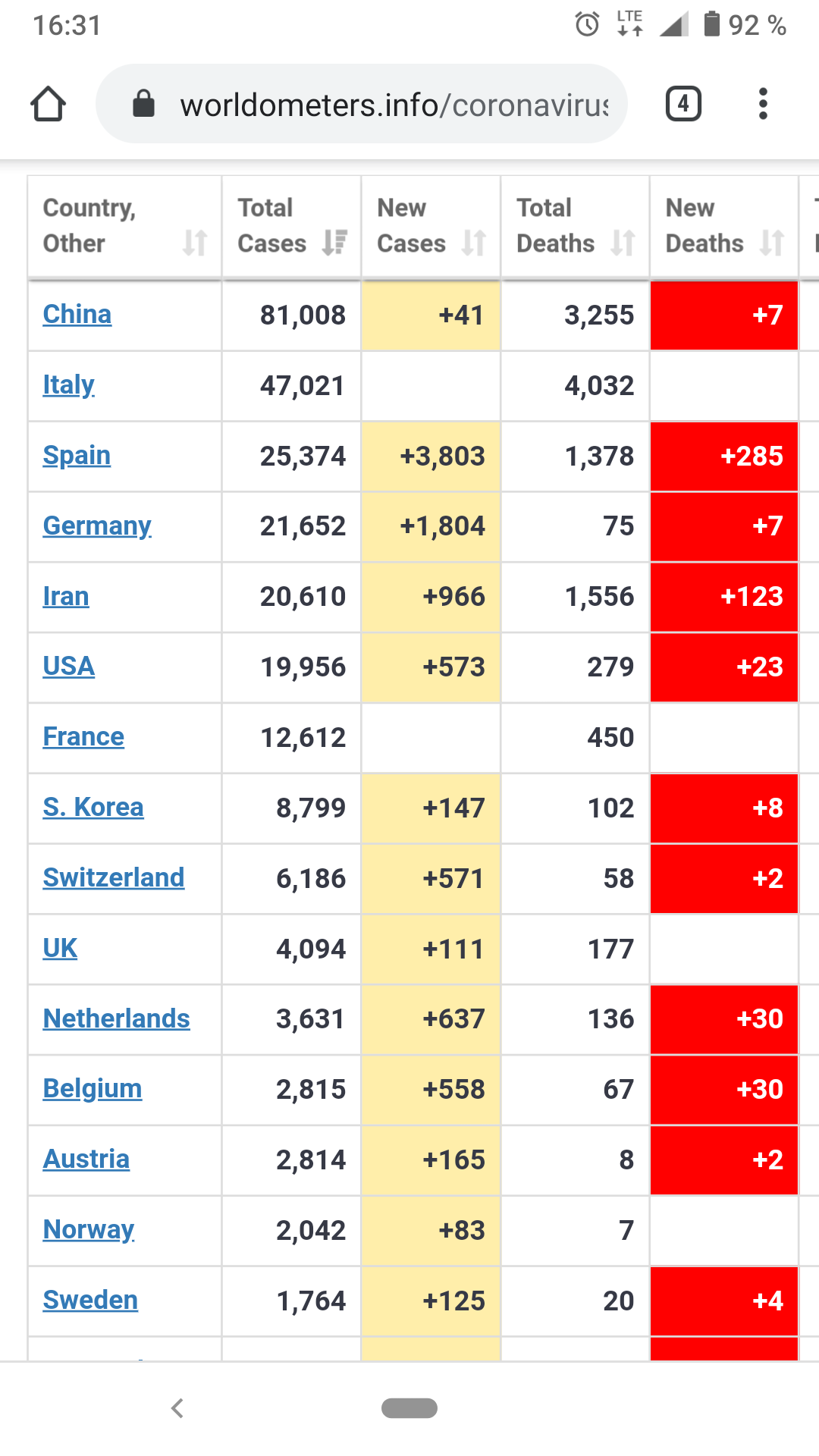 In Spanien 4.000 Neuinfizierte und der Tag ist noch nicht vorbei.