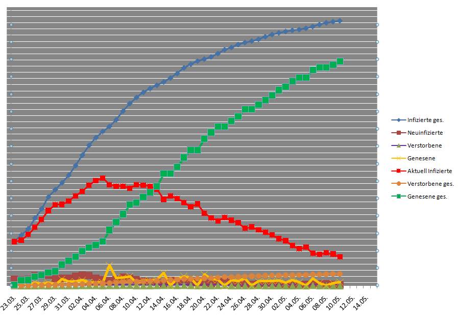 Deutschland 555 Neuinfizierte, auf dem Niveau des Vortages, aber noch weit entfernt von den positiven Zahlen in Österreich und Schweiz!