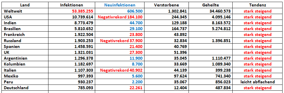 • Neuer Rekord in den USA, über 184k an Neuinfizierten und fast 2.000 Tote in den USA.