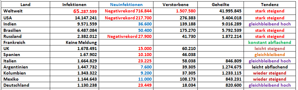 Bilanz über 65 Millionen Menschen haben sich infiziert, über 1,5 Millionen Menschen sind daran verreckt!
