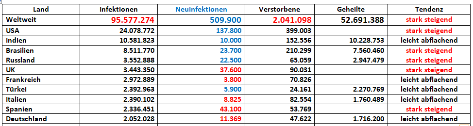 • Abflachende Neuinfektionen, Sterberate immer noch hoch, gestern 989!