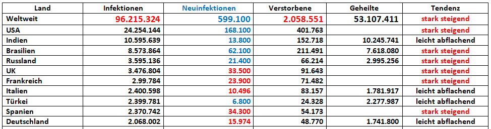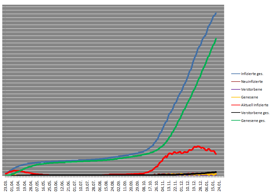 • Die 7 Tage Werte sinken weiter, jedoch steigt die Sterberate immer noch, 1148 weitere Menschen sind verstorben.