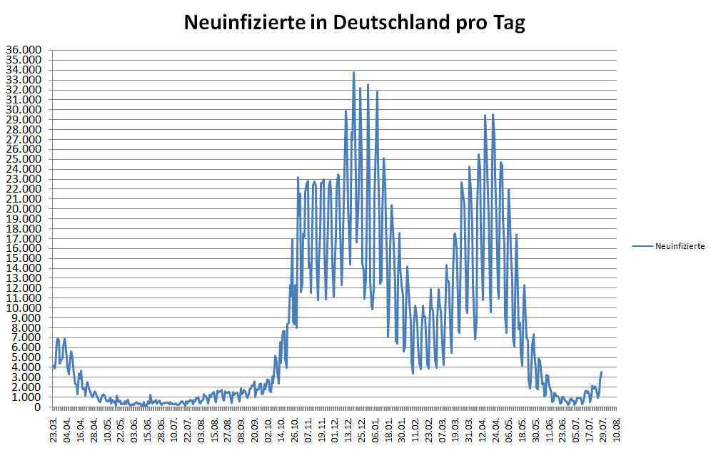 In der Urlaubszeit wächst der Anteil der Corona-Infektionen, die deutsche Urlauber vermutlich aus dem Ausland mit nach Hause bringen. Das RKI meldete 3662 Fälle. Meist waren die Reisenden in Spanien oder der Türkei.