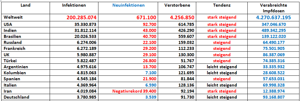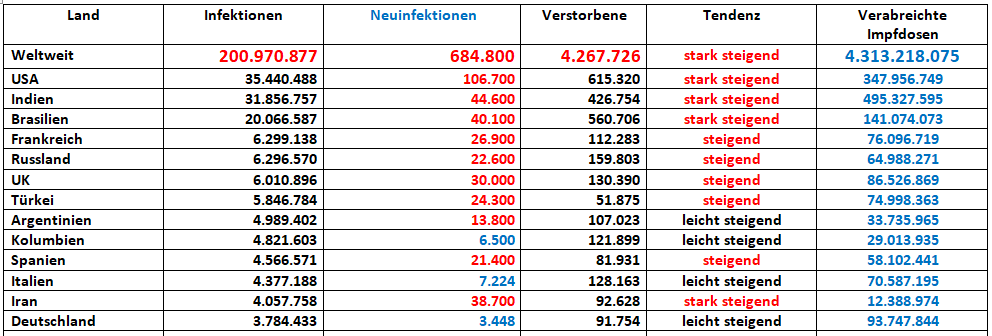 und auch zu den anderen Ländern weltweit!