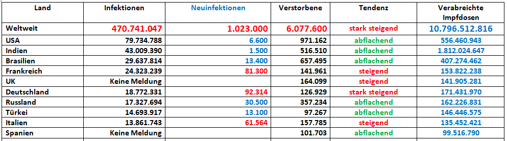 gerade in der Heimat, alles fast wieder Corona vor-Niveau, nur der Krieg und die hohen Kraftstoff Preise, Gas und Putin sind jetzt gerade der "Hit" auf der Piazza oder Bar, leider!Der hat seinen Namen geändert hab ich gelesen.