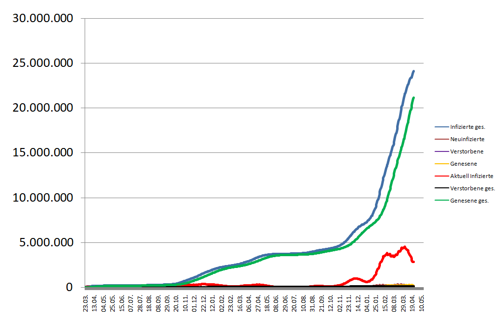 Wie auch immer: Der beste Schutz vor einer Infektion ist nun einmal das Tragen der Maske und das strikte Einhalten der AHA-L Regeln. Impfen kann nur vor einen schweren Krankheitsverlauf schützen; es schützt nicht vor einer Infektion.
