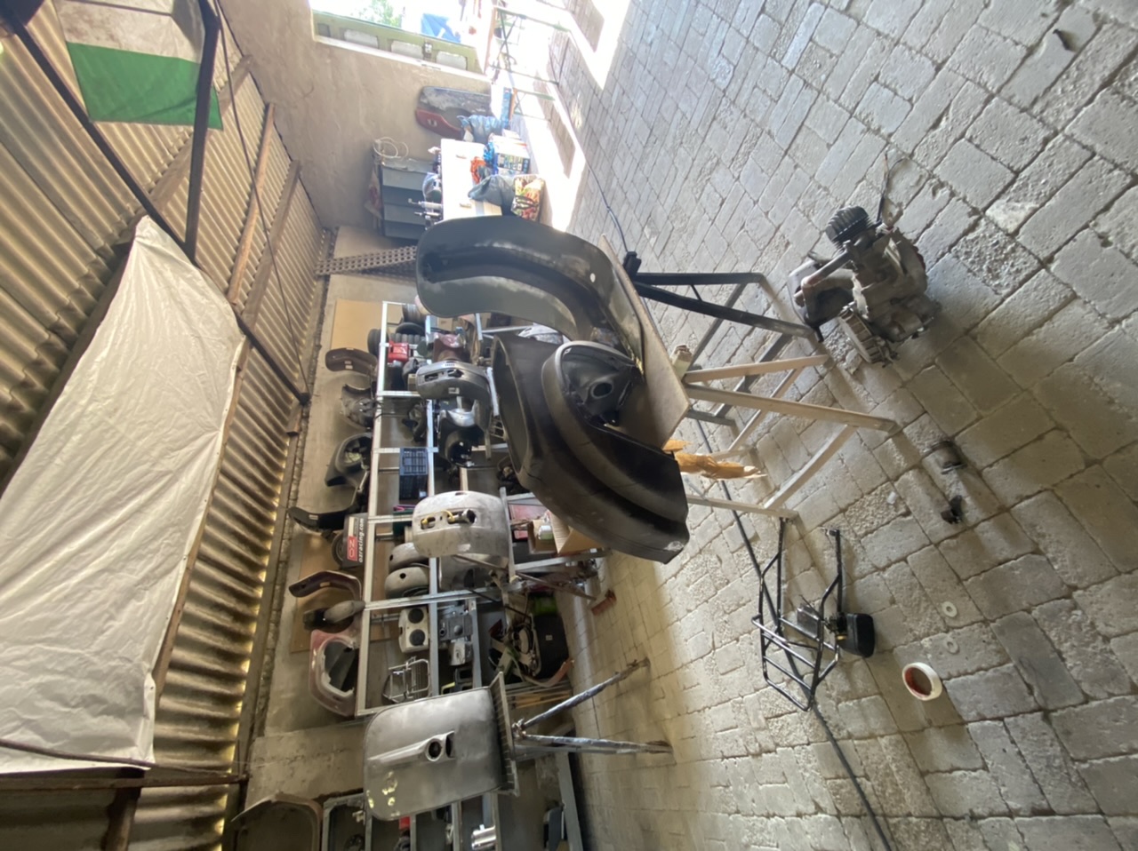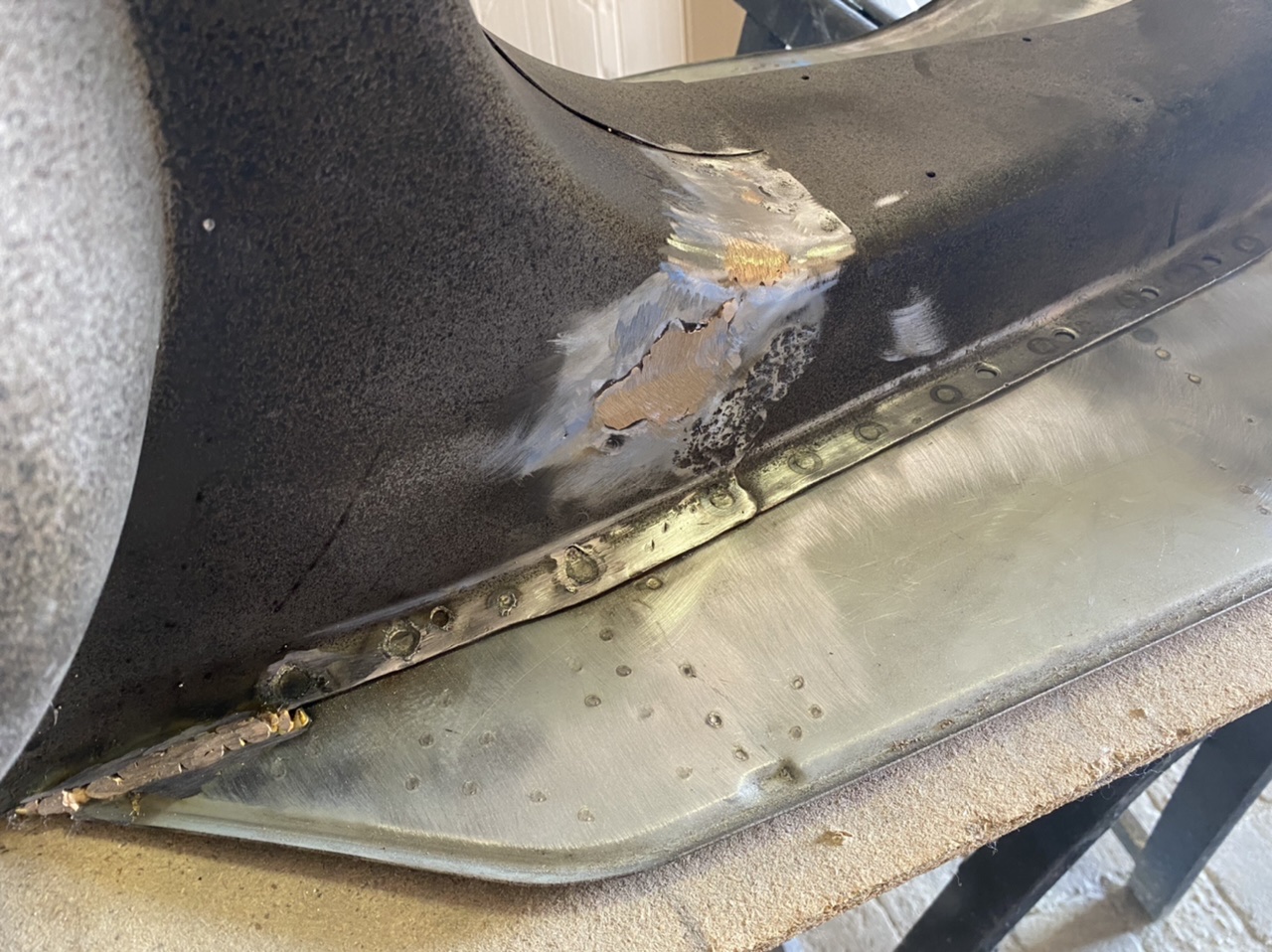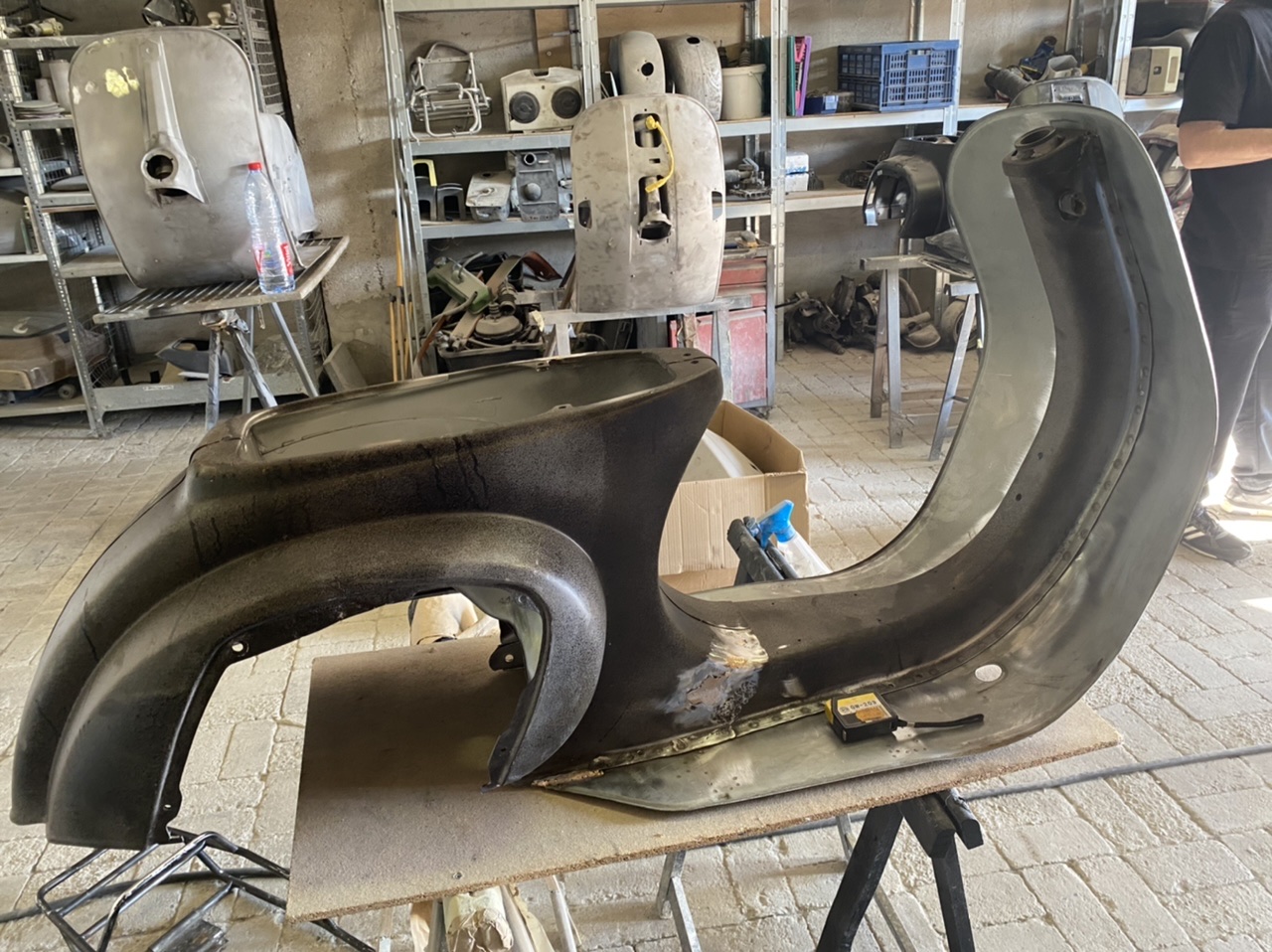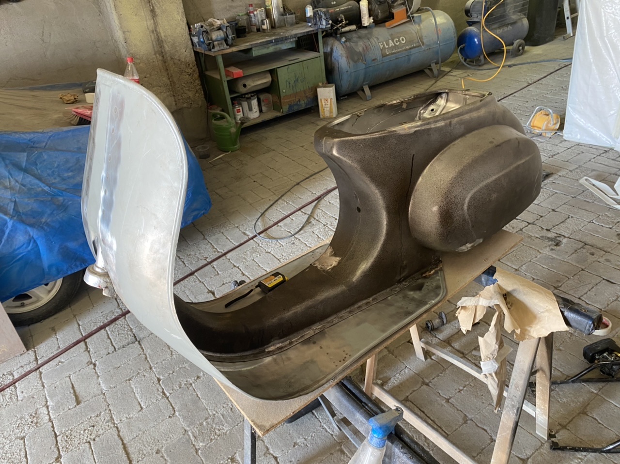 Vespa würde neue Beinschild und paar Kleinigkeiten zugeschweißt und Punkt geschweißt denn Beinschild