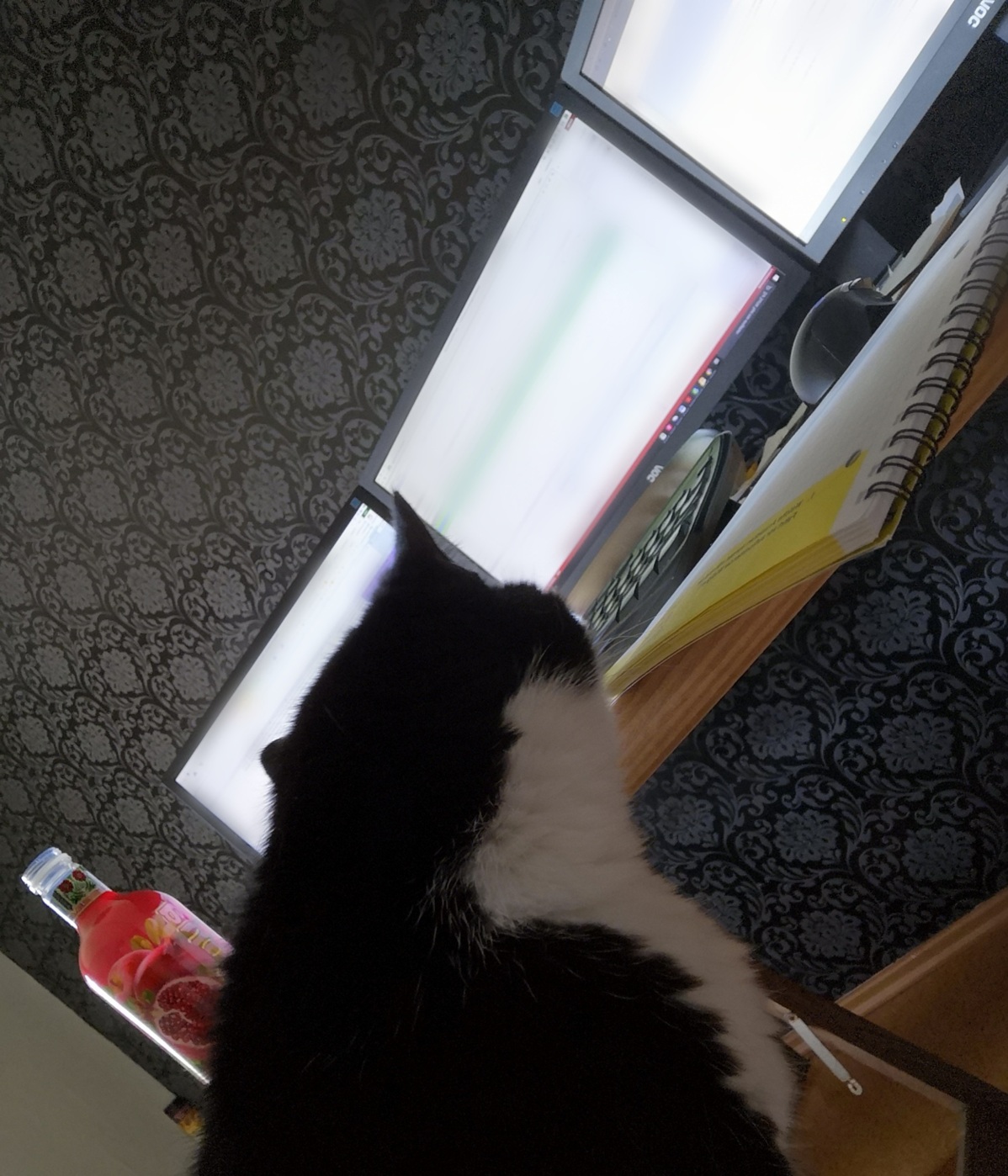 • hab ich nun ein motziges Kätzchen auf dem Schoß, was meine Arbeit im Home Office bewacht