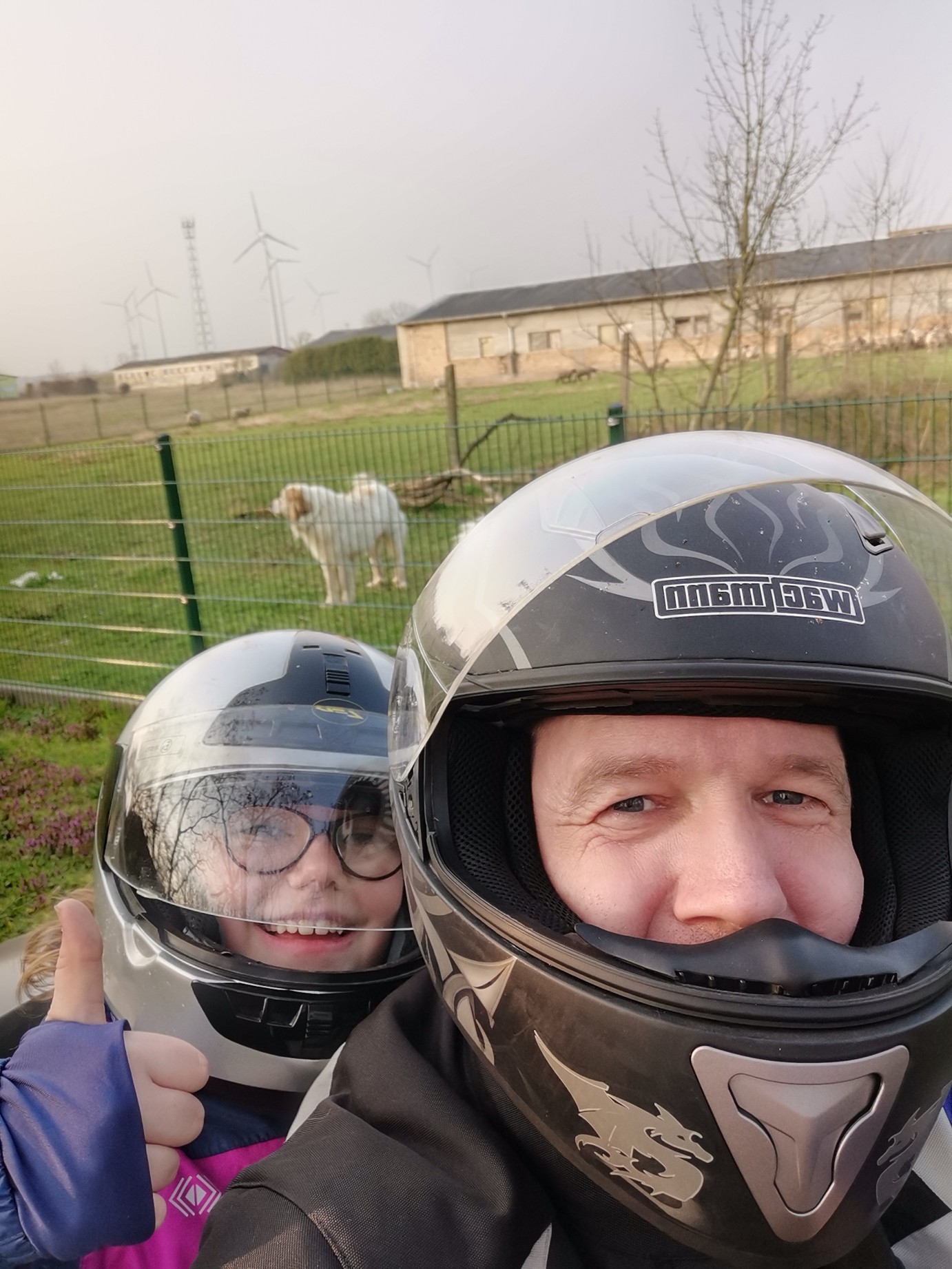 In den Helm hätte eine der Schwestern aber noch mit rein gepasst, hättet ihr auch ne lecker Runde zu dritt machen können.