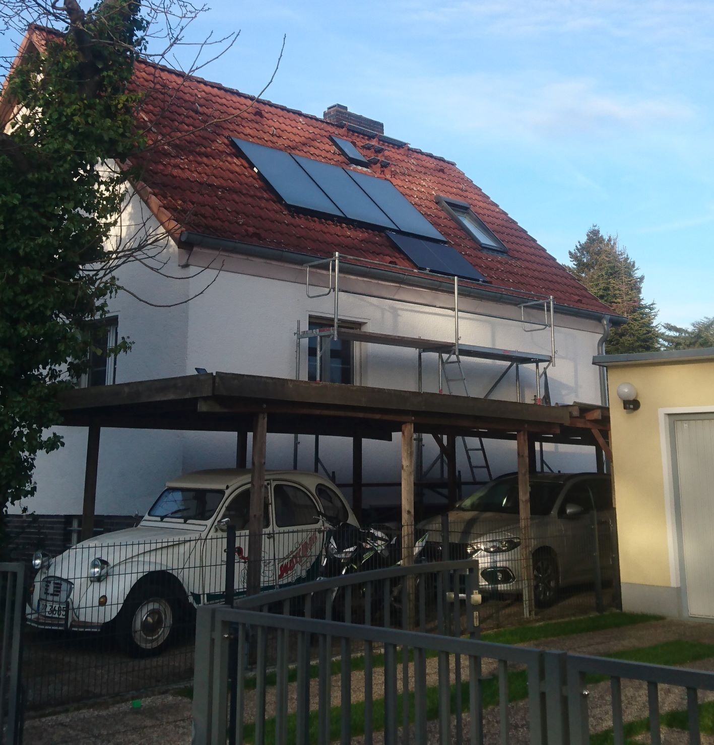 Gestern das Gerüst gestellt und heute werde ich versuchen ein PV-Modul aufs Dach zu bringen. ![]()
