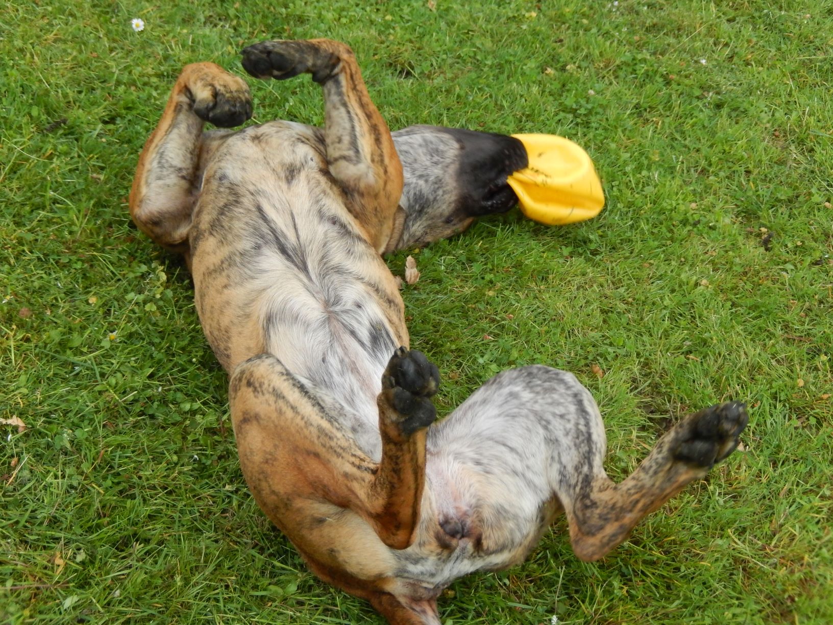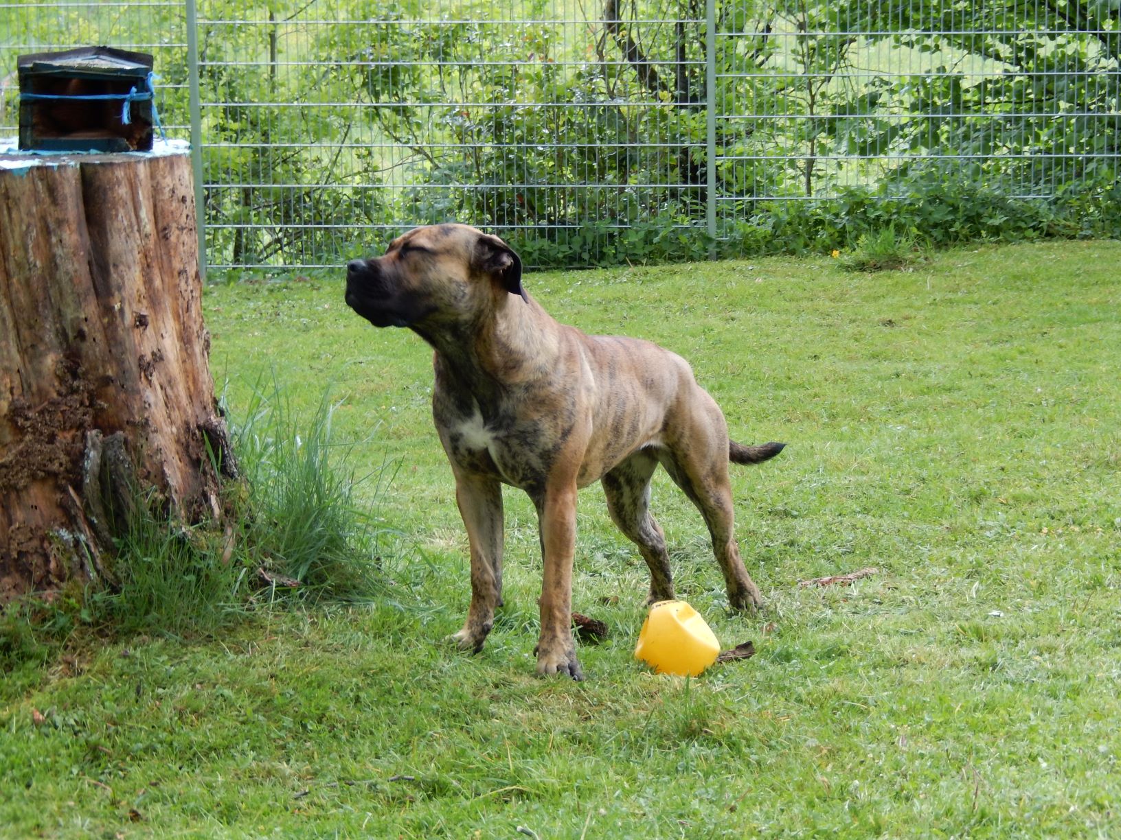Im Hintergrund: Raki. Raki ist (war) ein Windhundmischling, den wir 2006 nach dem Fußball-Sommermärchen als todkranken Straßenhund aus unserem Sommerurlaub aus der Türkei mit nach Deutschland gebracht haben und wieder aufgepeppelt haben. Ihr waren ihre Jungen viel zu früh abgenommen worden, so dass aus ihrem Gesäuge die Milch nicht heraus konnte und ihr Gesäuge daher hochentzündet bis zum Boden hing. In der Türkei wäre sie jämmerlich eingegangen. Also haben wir alle Hebel in Bewegung gesetzt und haben sie mit nach Deutschland genommen. Sie ist bzw. war der dankbarste und treueste Hund, den man sich nur vorstellen kann. Sie ging vom ersten Tag an ohne Leine, hörte aufs Wort und klebte förmlich an meinen Beinen. Letzten Herbst mussten wir sie gehen lassen, nach dem sie mit ca. 15-16 Jahren ein erfülltes Hundeleben hatte.