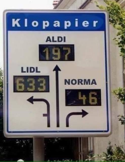Der Einkaufswagen vor unter hinter mir hatte auch Klopapier und Küchenrollen....