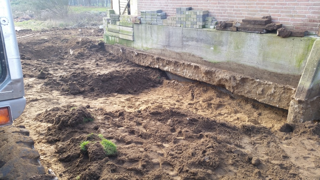 Minibagger geht durch oder einfach alles raus reißen und planieren.