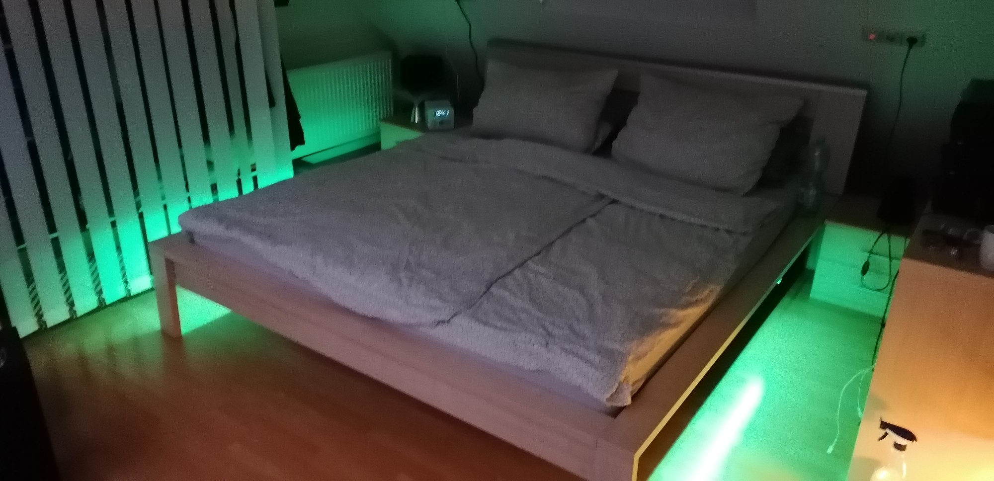 Das ganze funktioniert nun für jede Seite vom Bett unabhängig. Auch die Farben (RGB) und die Einschaltdauer sind unabhängig programmierbar.