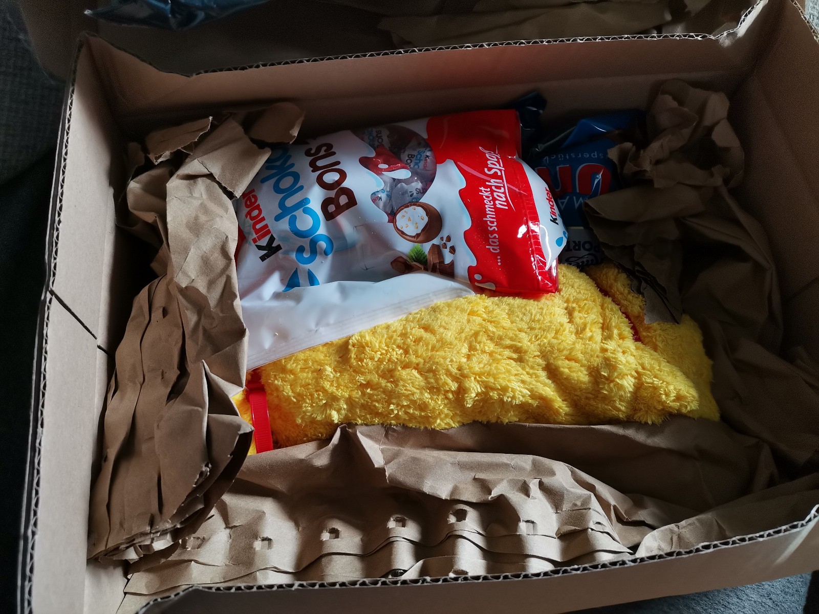 Grad nach Hause gekommen, Zack, Westpaket angekommen.