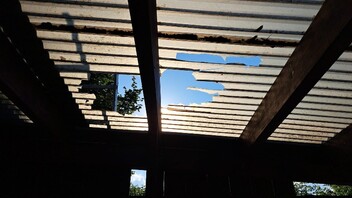 Leider einen Fehltritt gemacht, aber zum Glück mit den Rippchen auf dem Balken der Terrassenüberdachung hängen geblieben. Etliche Prellungen, Abschürfungen und ein Cut am Kopf.