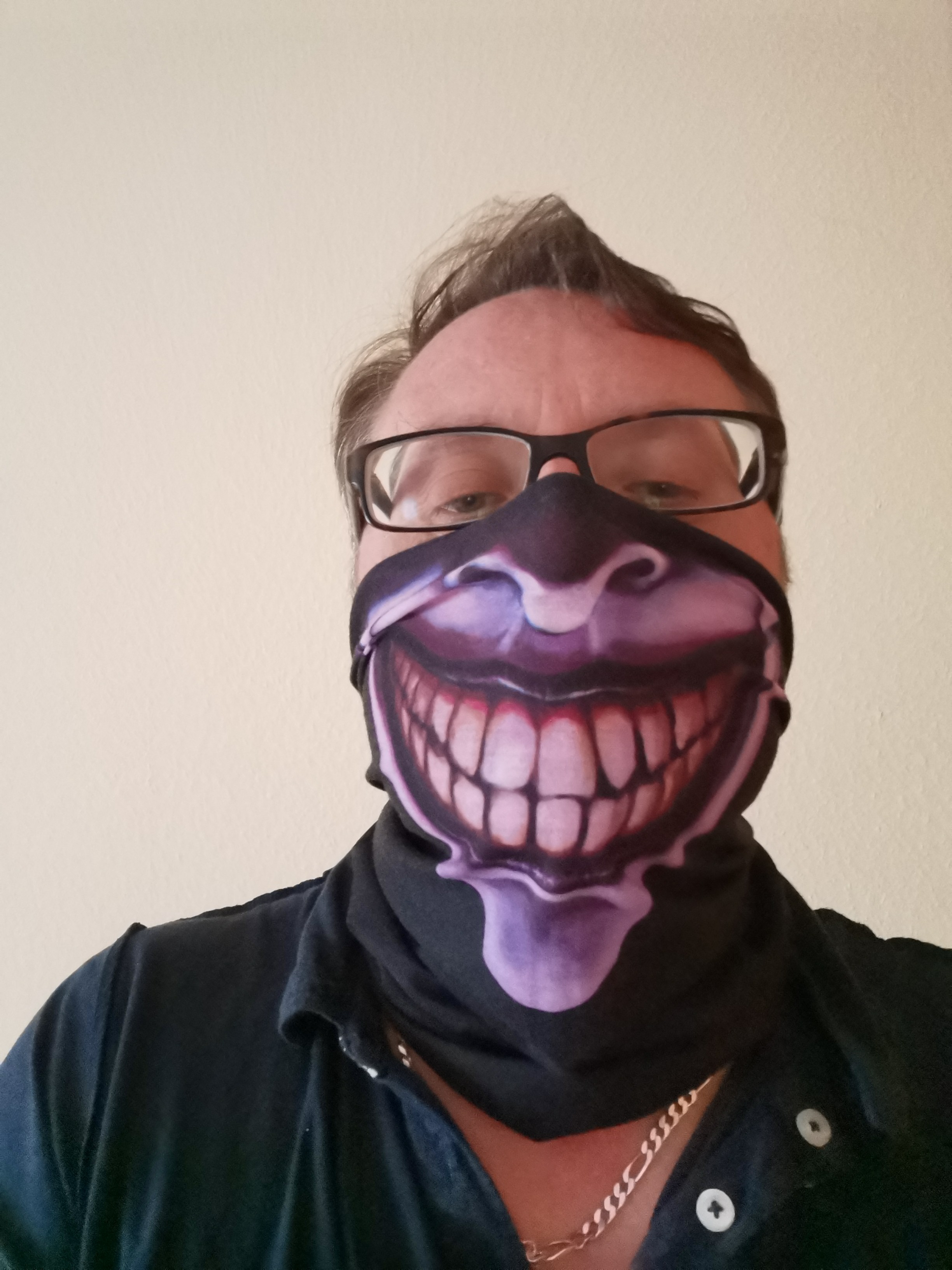 Von mir gibt's hier auch kein Maskenbild. Des reicht schon wenn ich auf Arbeit den ( leider sinnvollen) Mist stundenlang trage. Das ist wahrlich kein Spass. Gestern hab ich ein T-Shirt gesehen da stand drauf: Riechst du den Furz war der Abstand zu kurz. Das fand ich dann doch sehr witzig.