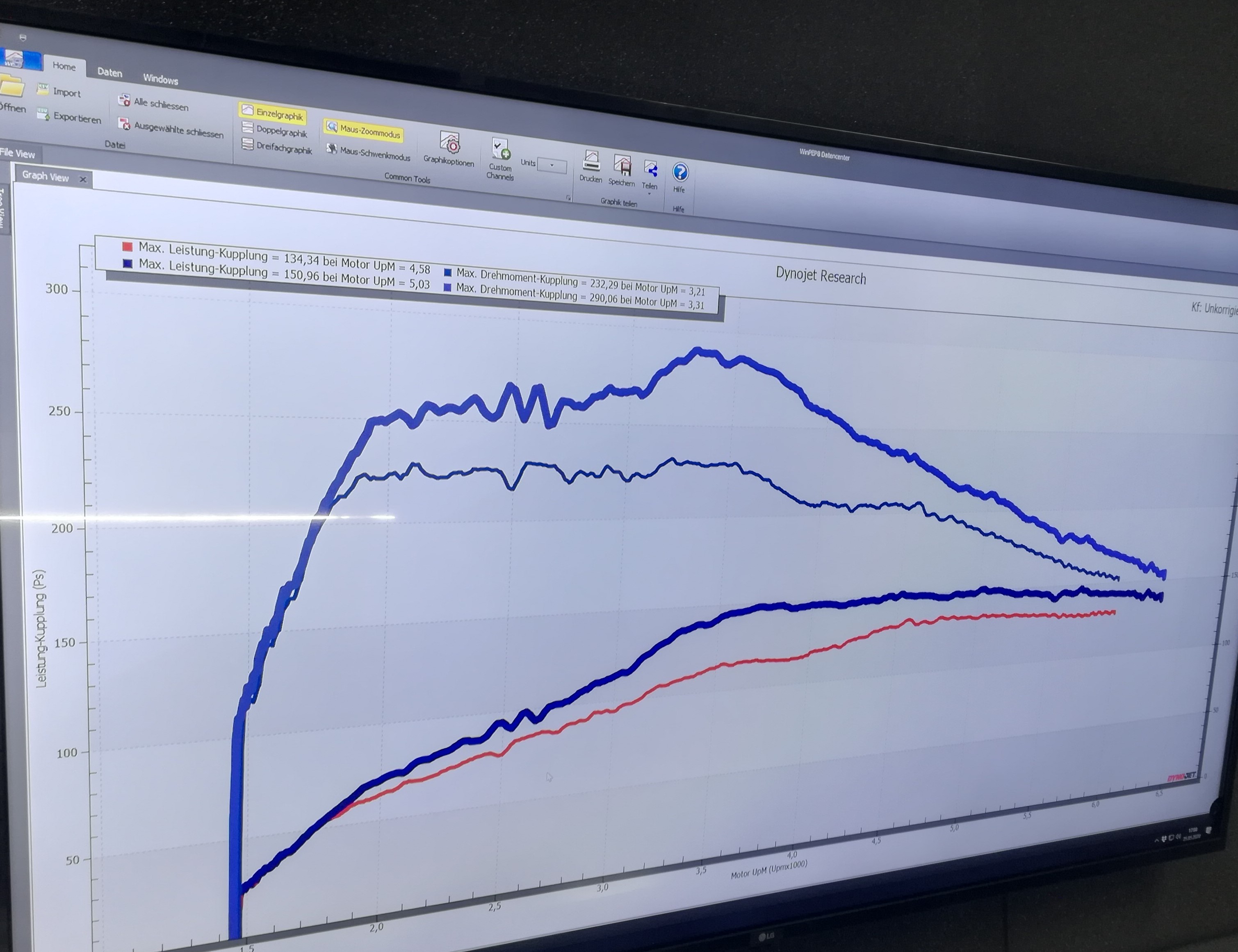 Nachdem die dann das Steuergerät rausgenommen hatten und das Programm umgeschrieben hatten, sind es nun 150 PS zu 290 NM.