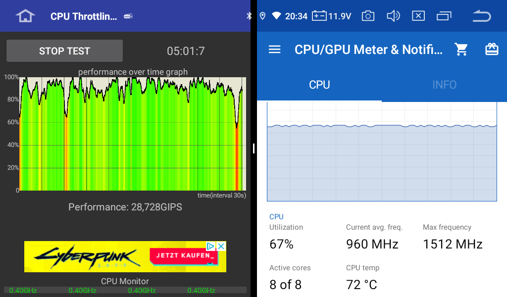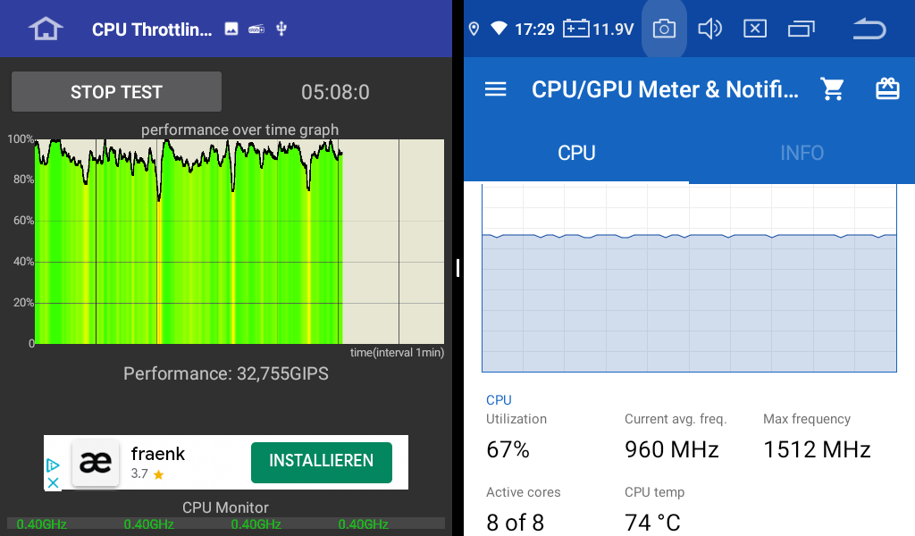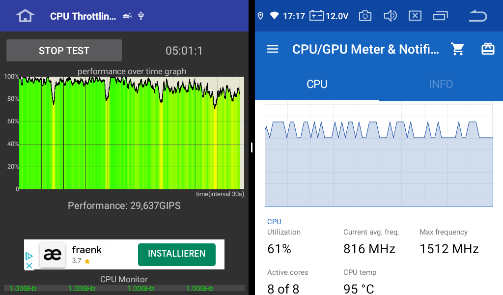 man sieht wie die CPU permanent drosselt - die PX5 sind glaube bis knap über 100C° spezifiziert... also nicht mehr viel Spielraum im Hochsommer...