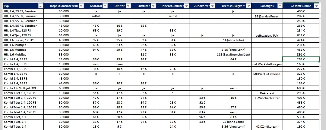 • Ja, da hat Du Recht, aber wir müssen immer in Betracht ziehen, was für ein Auto (Benziner, Diesel), Land & Wohnort, Inspektionsumfang, Stundensatz etc.