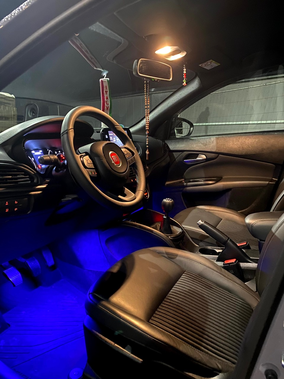 Mein Fiat: Fiat Tipo Kombi EZ 02/2018, 1,4 Benziner mit 95 PS, Easy Ausstattung mit dem Tech Paket und Mediterraneo-Blau-Lackierung, Tuning: Tipoeinstiegsleisten aus Edelstahl, Tricolore Badges an den B-Säulen, Gummilippe und Motorhaubenschlossabdeckung, sowie Tipo Gummifußmatten mit Tipo Schriftzug, sowie Tipo Velourfußmatten mit Naht und Tipomuster und Kofferraumwanne, und eine Fiat Kofferraumbox.
