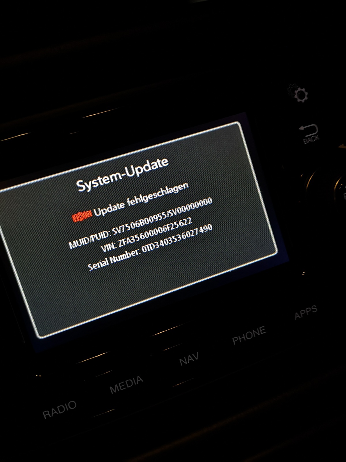 Zudem, wenn ich auf die Navi Taste drücke, steht dort immer "Update fehlgeschlagen bla bla bla".