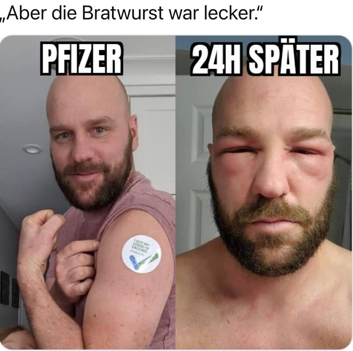 So der Junior is auch erstgeimpft. Und den langen Lulatsch hats komplett entschärft. Arm dick, Fieber, fast 17 Std gepennt.