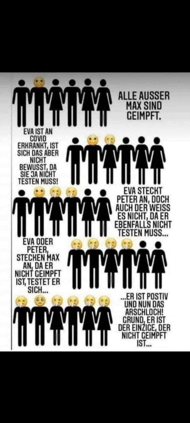 Ich bin ganz ehrlich, die Welt ist ja permanent überbevölkert nä. Wegen mir dürft es ruhig noch welche dahinraffen von den Covidioten. Hab ich kein Mitleid. ![]()