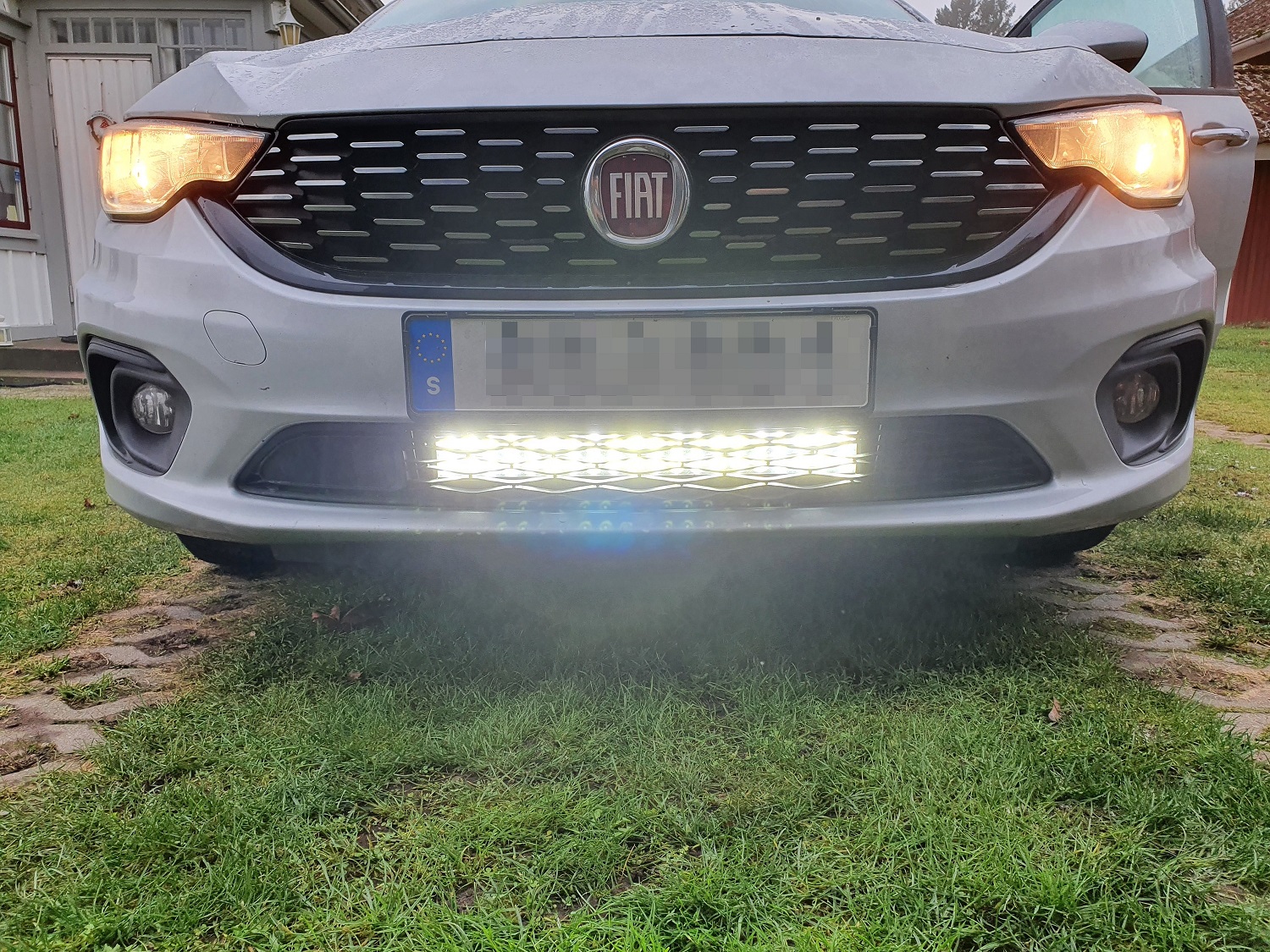Werden oberhalb des Kennzeichen, vor dem Kühlergrill angebracht. Habe mich extra für zwei entschieden damit das Fiat Logo in der Mitte erkennbar bleibt.