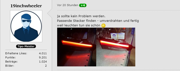 LED-Rückleuchten, wenn ich das konfiguriere dann erwarte ich das auch. Das ist wirklich irgendwie ne Mogelpackung.