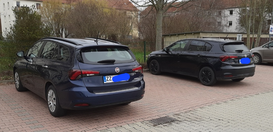 Mein Fiat: Tipo Limousine, Pop, Tech-Paket, 95 PS, Benziner, rot, Vogtlandfedern, Bilsteindämpfer, Dach- und Frontspoilerfolierung, EZ: 6/2016, 130.500 Kilometer; Renault Clio 3, Benziner, blau, 75 PS, EZ: 3/2008, 223.500 km