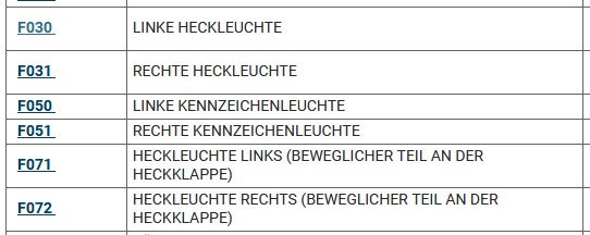 Innen ist für mich F71 und 72, also die "inneren" Leuchten an der Heckklappe.