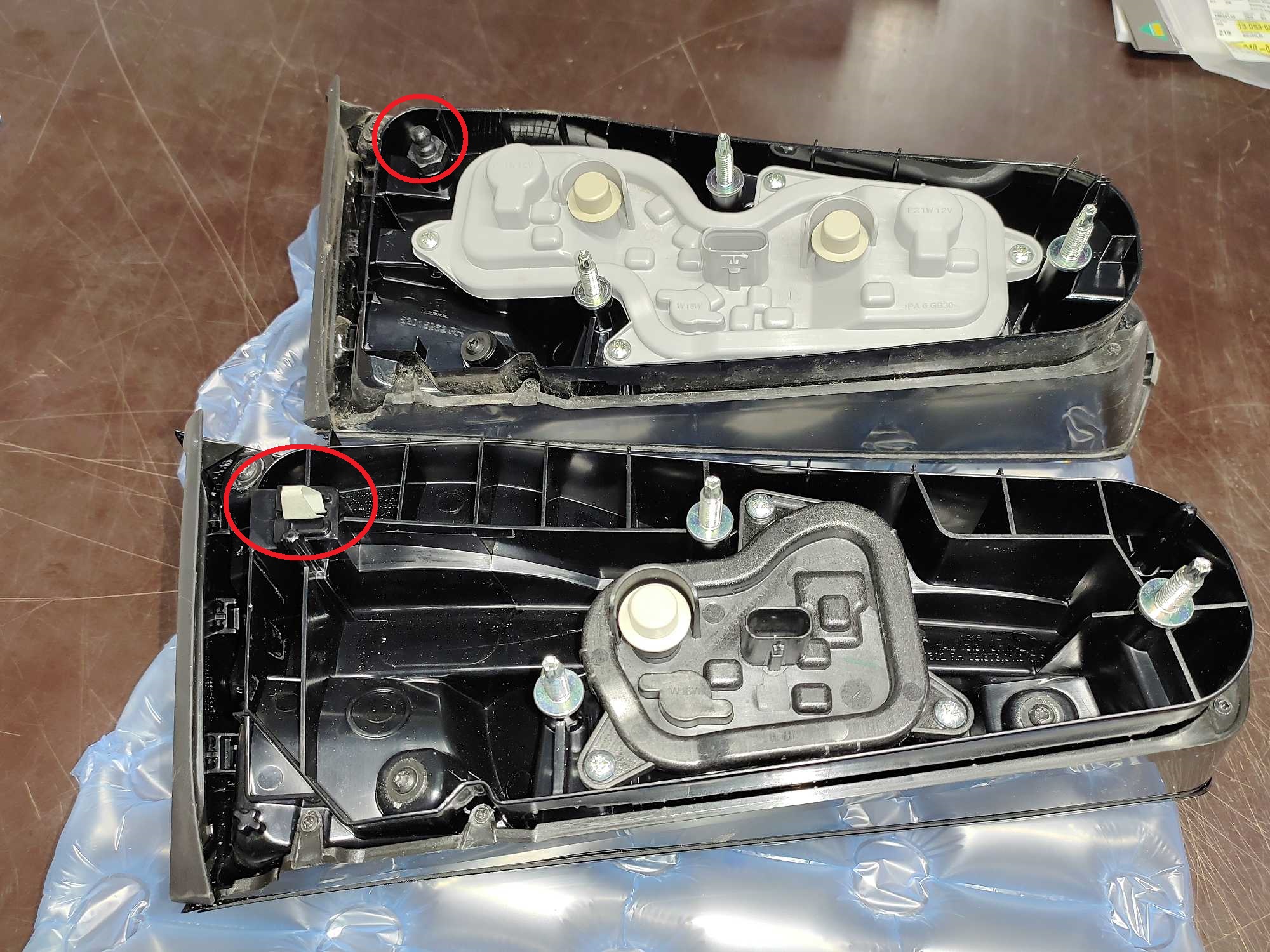 Die Leuchten passen von den Aufnahmen her, trotz kleiner Unterschiede, ohne weitere Bearbeitung. Zumindest bei mir. Es scheint als gäbe es bei den Standartrückleuchten auch schon Unterschiede. Ich musste nur an den äußeren Leuchten einen Kunststoffring an der Aufnahme in der Karosserie entfernen.