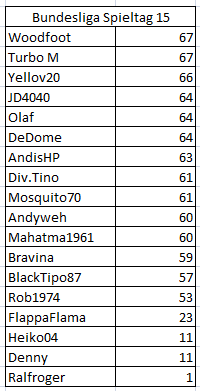 Spiel 9: Bielefeld - Hertha 1:0Unsere Besten, Andi, Heiko und Denny mit 5 von 9 Punkten!