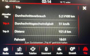 921 km geschafft bei 47,1 getankten Litern ergibt händisch gerechnet 5,11 Liter auf 100 km.Wobei mir unklar ist wo der Sprudel reingeflossen ist wenn der Tank laut Papieren angeblich nur 45 Liter fasst.