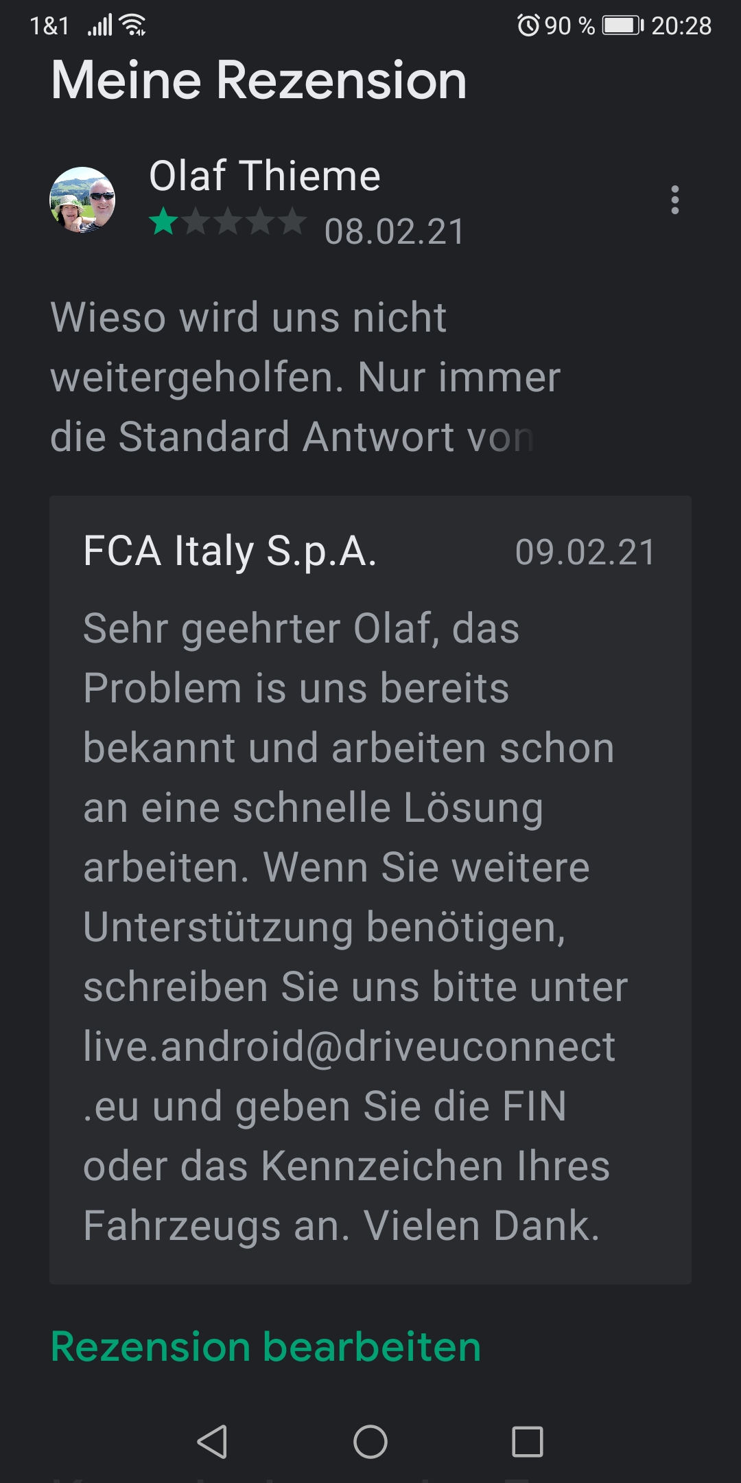 Dito. Habe heute die App deinstalliert und neu installiert, aber es funzt immer noch nicht. Sehr seltsam. Zuviel Schnee auf der Antenne bei FIAT oder wo auch immer der Server werkelt.